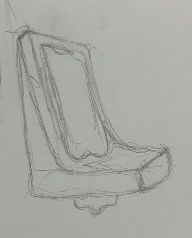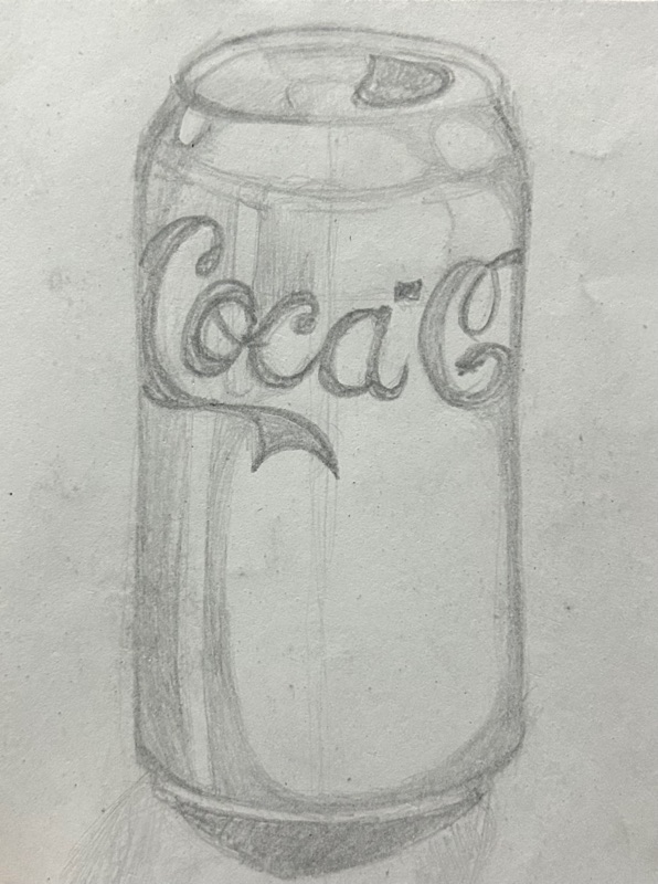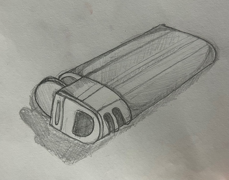 Desenhos de observação de objetos cotidianos (isqueiro, lata e cadeira do metrô)